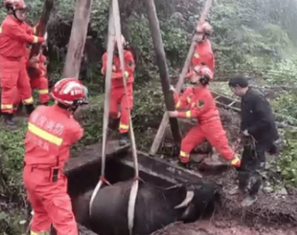 水牛失足墜井,消防員用91麻豆精品国产一区色欲施救